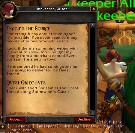 の宿屋の Allison を尋ねてください。時間を無駄にしてはいけません。香水がなくては